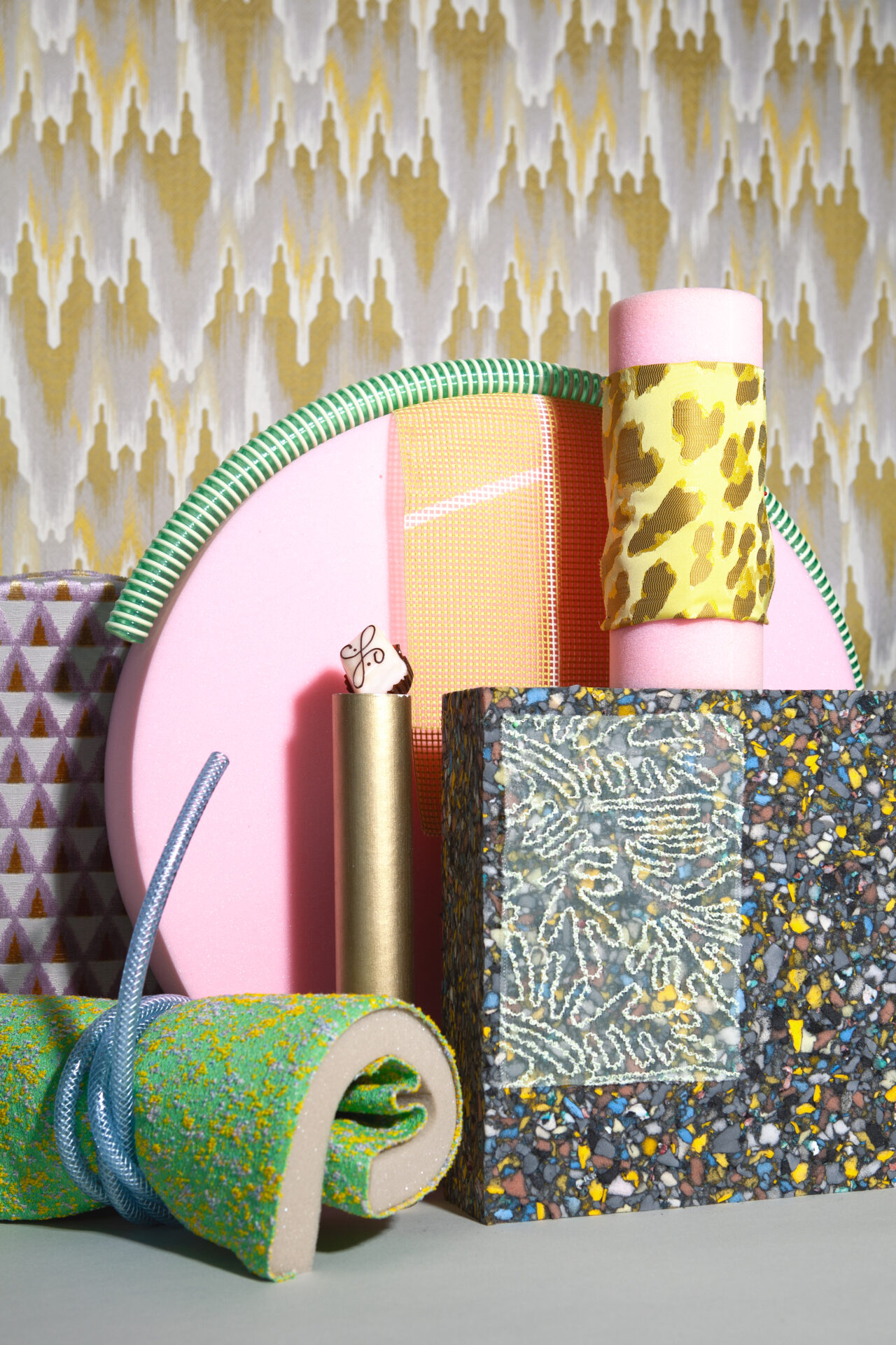 Frühlingsserie für die Aprilausgabe 2024 der Wohnrevue. Moodboard aus dem Material- und Farbfundus von Maria Degiorgi, Irène Münger und Kathrin Wiedmer aka MIK Studio.